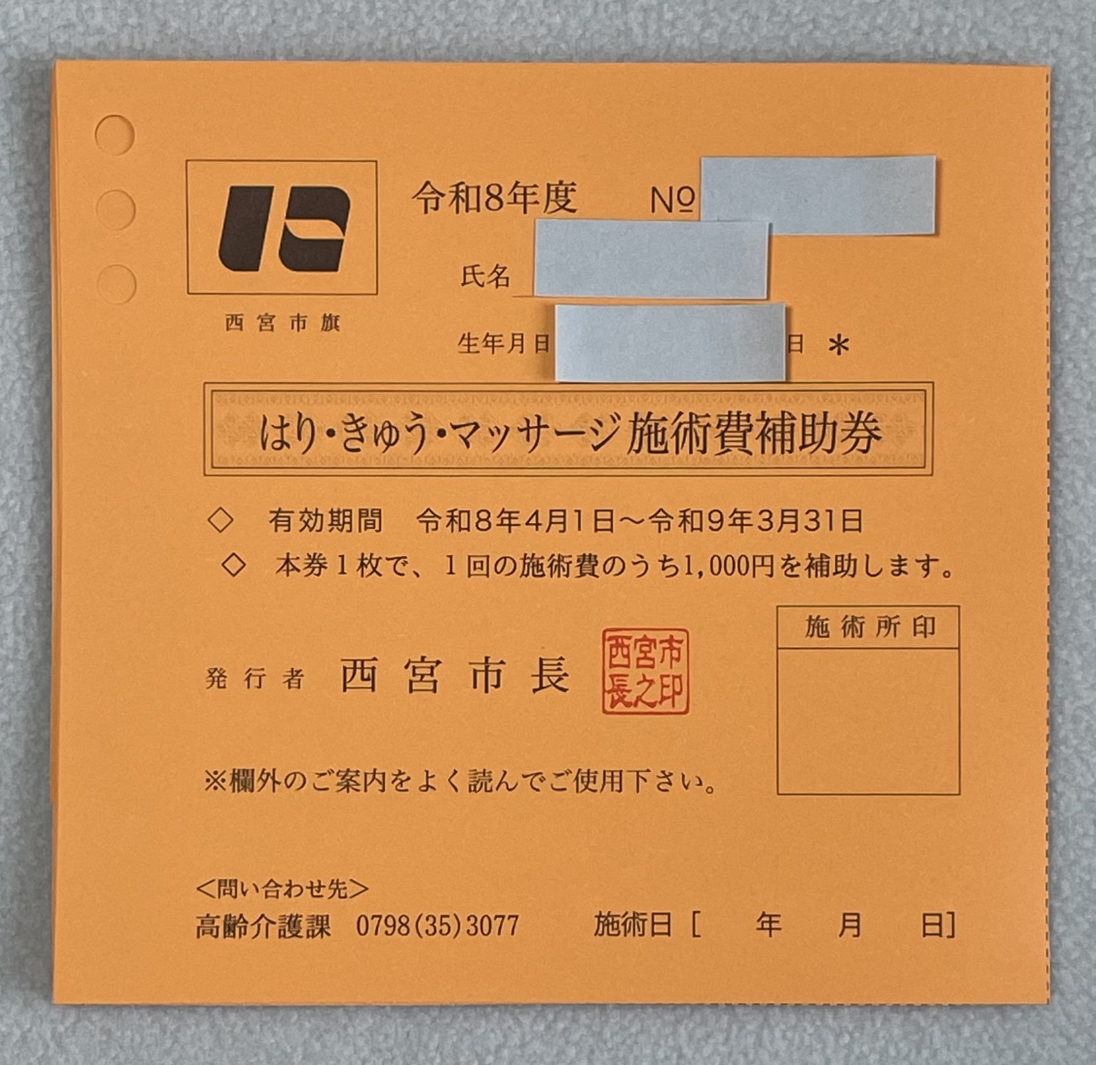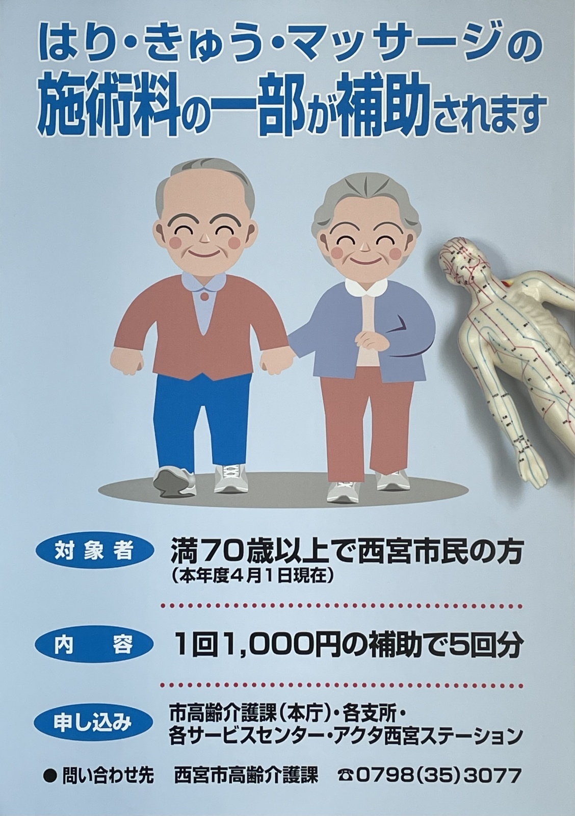はり•きゅう•マッサージ施術費補助券の交付が今年も4月1日より始まっております。